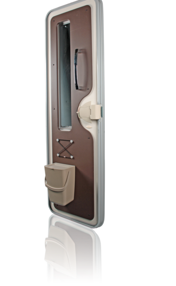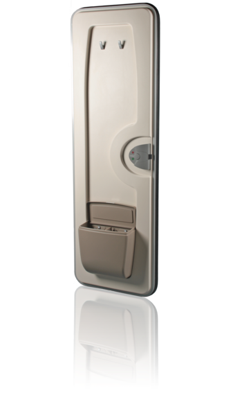 Our specially developed multi-purpose containers can be installed anywhere in the mobile home. They are specially designed for body doors which precisely adjust to the design shape of the door. The multi-purpose containers are detachable and can also be later installed in already existing vehicles.